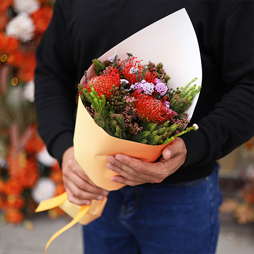 Букет "Капс" из лейко и экзотики